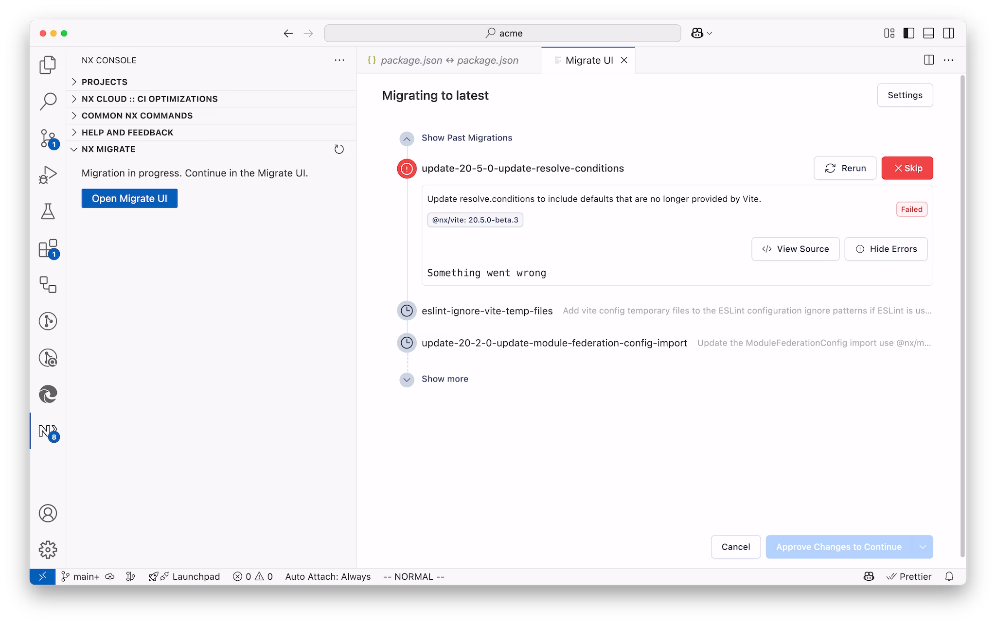 The Migrate UI is available for VSCode and Cursor editors. Make sure you have the Nx Console extension installed before you continue.